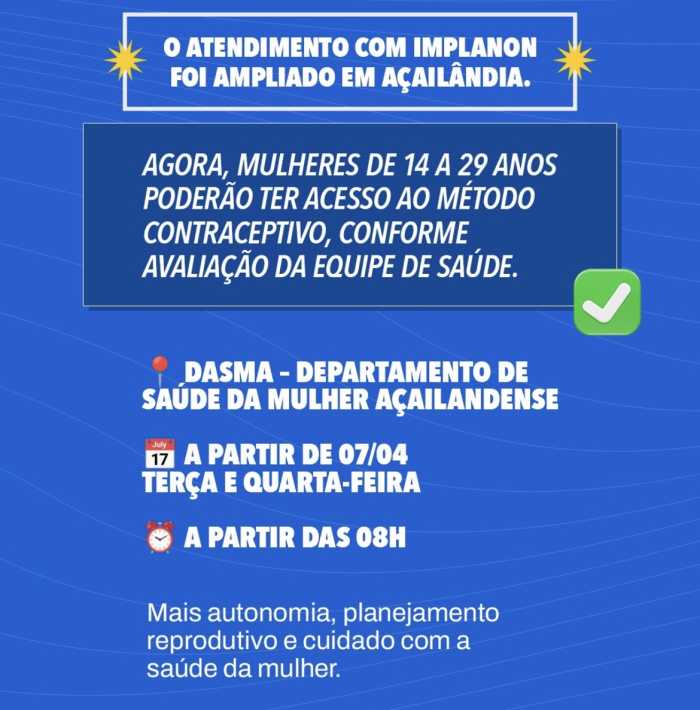A Prefeitura de Açailândia, por meio da Secretaria Municipal de Saúde, anunciou uma importante expansão no programa de planejamento reprodutivo da cidade. A partir desta semana, o acesso ao Implanon, um dos métodos contraceptivos mais modernos e eficazes do mundo, foi ampliado para um público mais jovem.